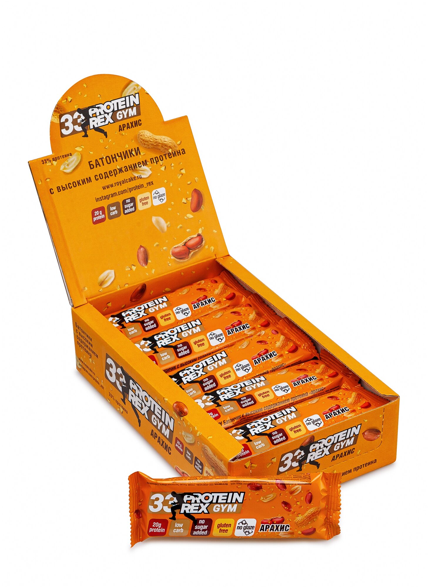 Купить Протеиновые батончики без сахара ProteinRex GYM (Джим) арахис, 15 шт х 60 г спортивное питание, ПП еда, спортивные батончики