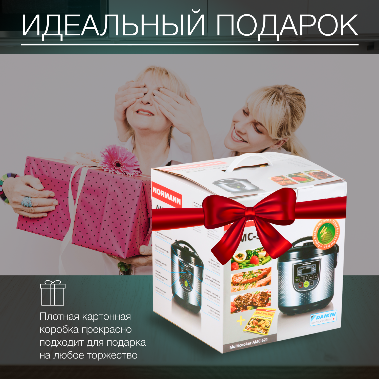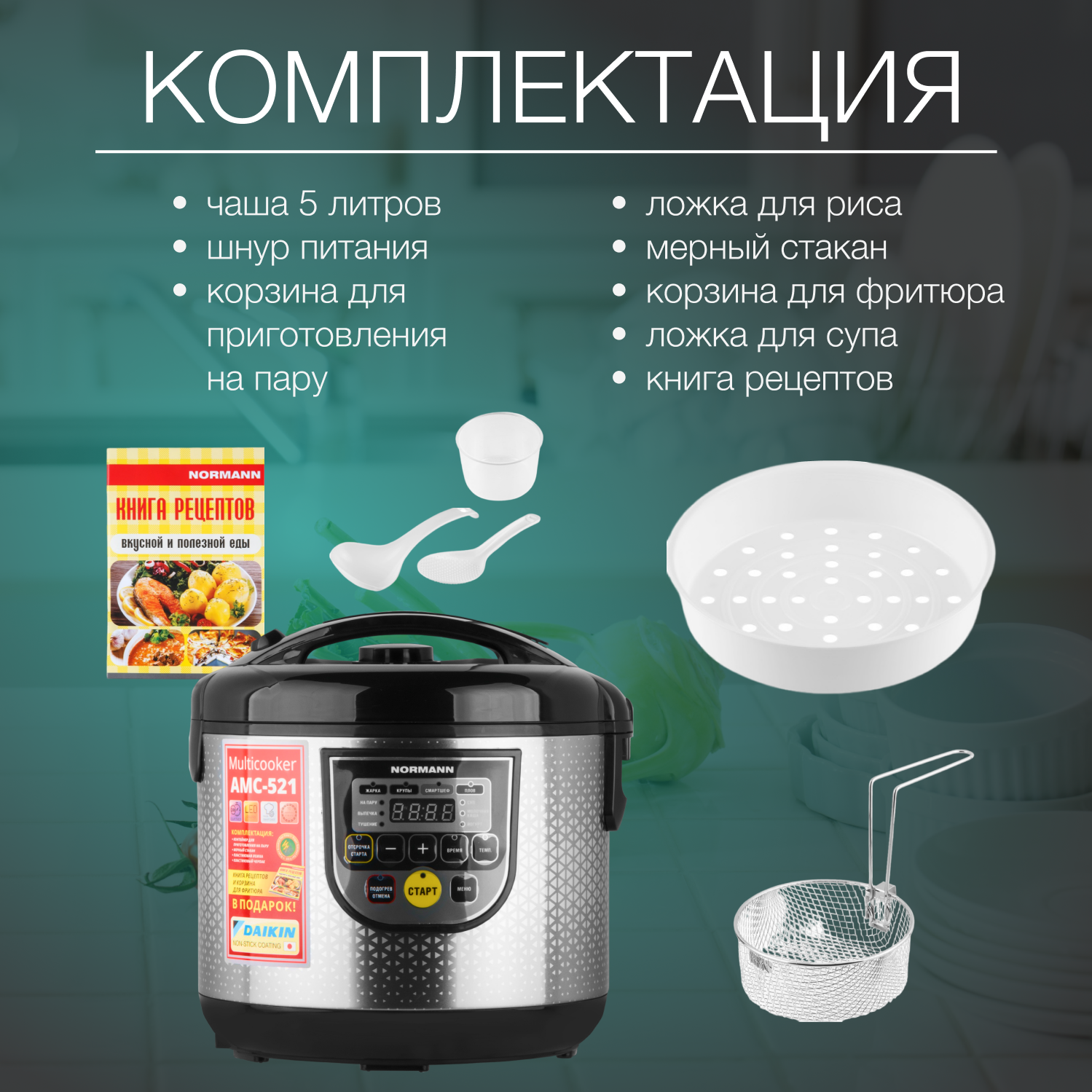 Мультиварка NORMANN AMC-521 (900 Вт, 5л, 10 программ, смартшеф, паровая корзина, фритюр, покрытие Daikin) интересное: