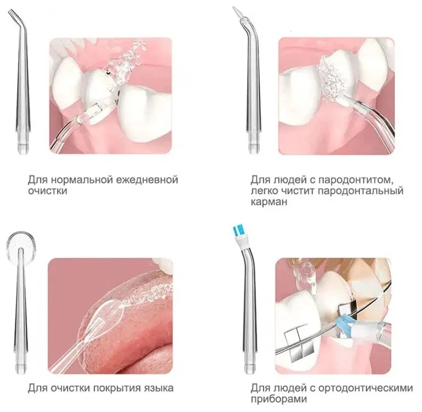 | Плюсы: | Подходят для ирригатора, как и родные,идеальны для брекет систем |
