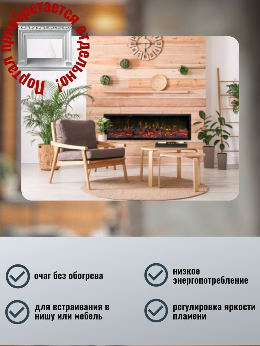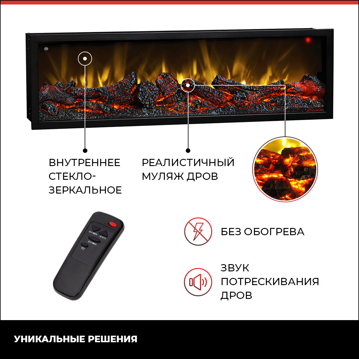 Линейный электроочаг RealFlame Flash 36, реалистичный муляж прогоревших дров, обогрев, термостат, пульт ДУ (линейный электрический очаг)