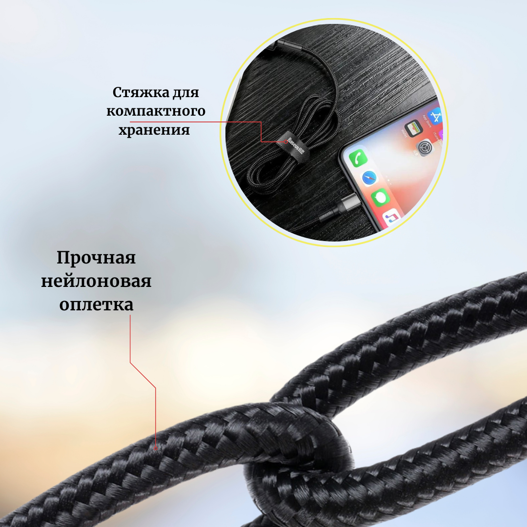 Baseus Кабель для зарядки телефона USB 2.0 A (m) - Айфон Lightning (m) 2м Baseus Cafule Special черный