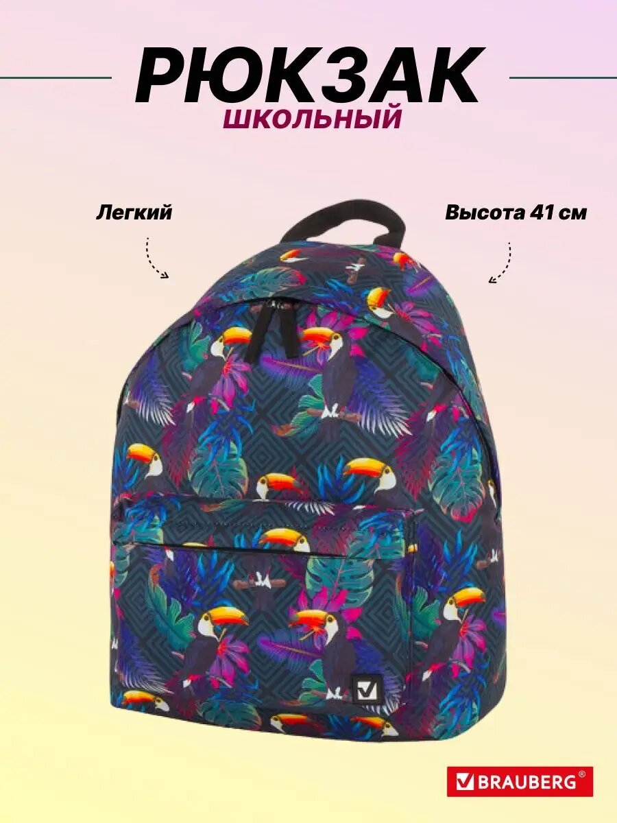 228847, Рюкзак BRAUBERG, универсальный, сити-формат, Туканы, 20 литров, 41х32х14 см
