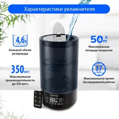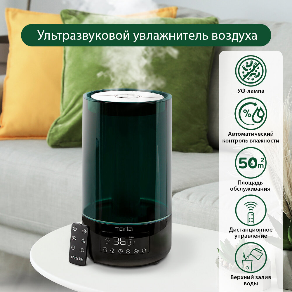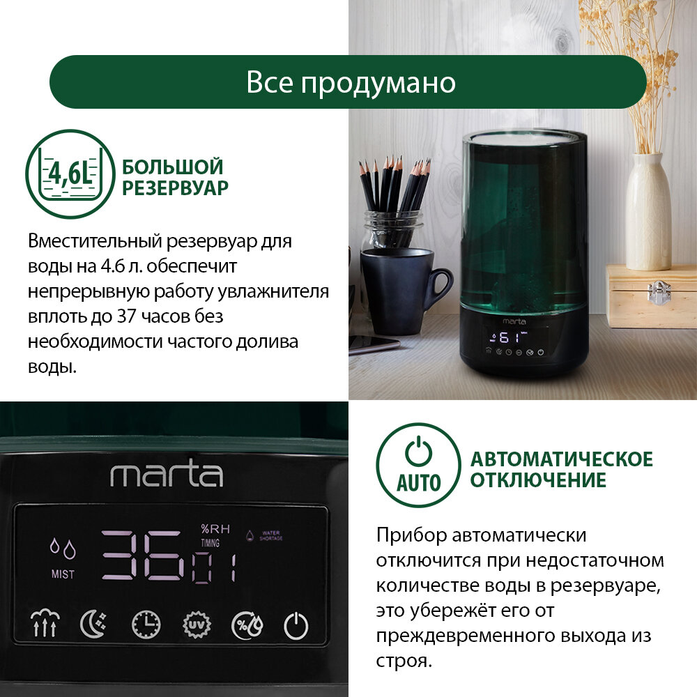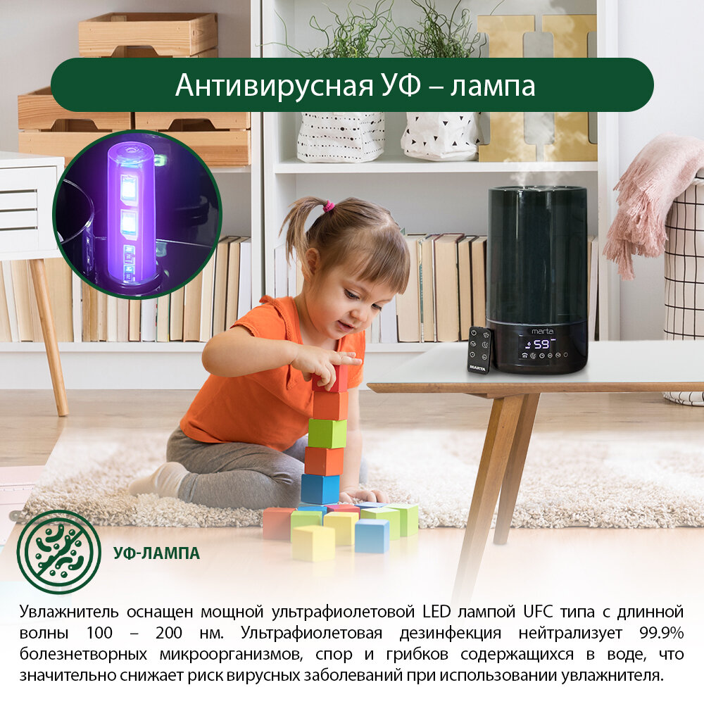 MARTA MT-2696 {черный жемчуг} увлажнитель воздуха с антивирусной УФ-лампой