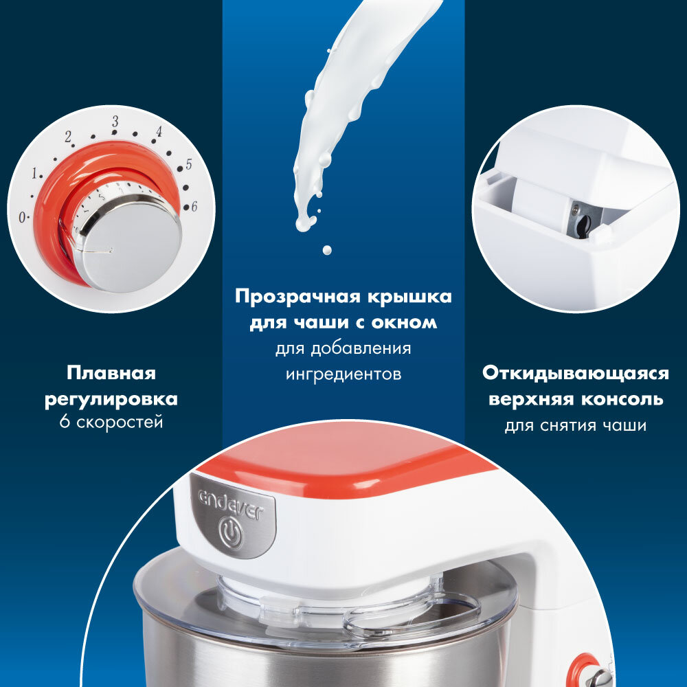 Планетарный миксер Endever Sigma-26, 1000 Вт, 3,5л, 6 скоростей, насадки, гарантия