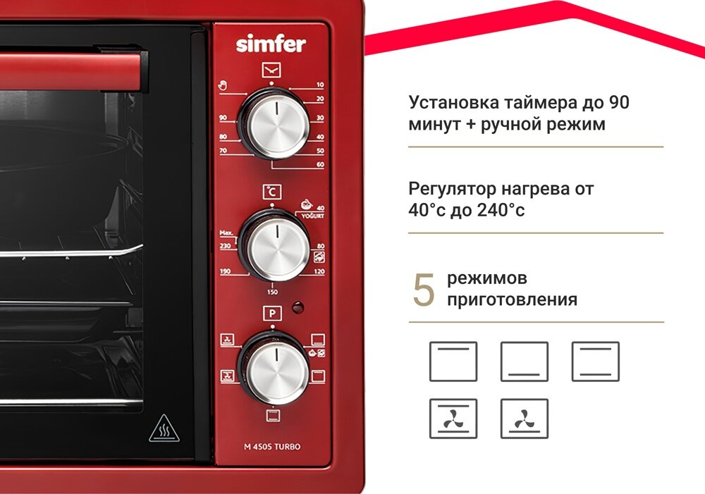 Мини-печь Simfer M4505 серия Albeni Plus Comfort, 5 режимов работы, конвекция