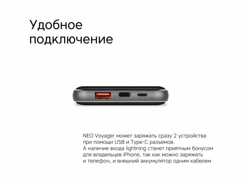 Аккумулятор внешний портативный Rombica NEO Voyager Black CPB-001 10 000 мАч, Lightning, USB Type-С, USB Type-A, чёрный