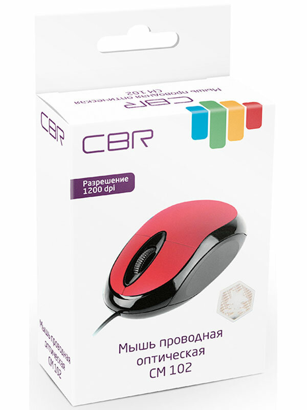 CBR CM-102 Red оптика, 1200dpi, офисн., провод 1,3м, USB
