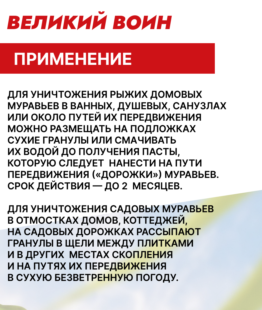 "Великий Воин" - гранулы для борьбы с муравьями и другими ползающими насекомыми 150г