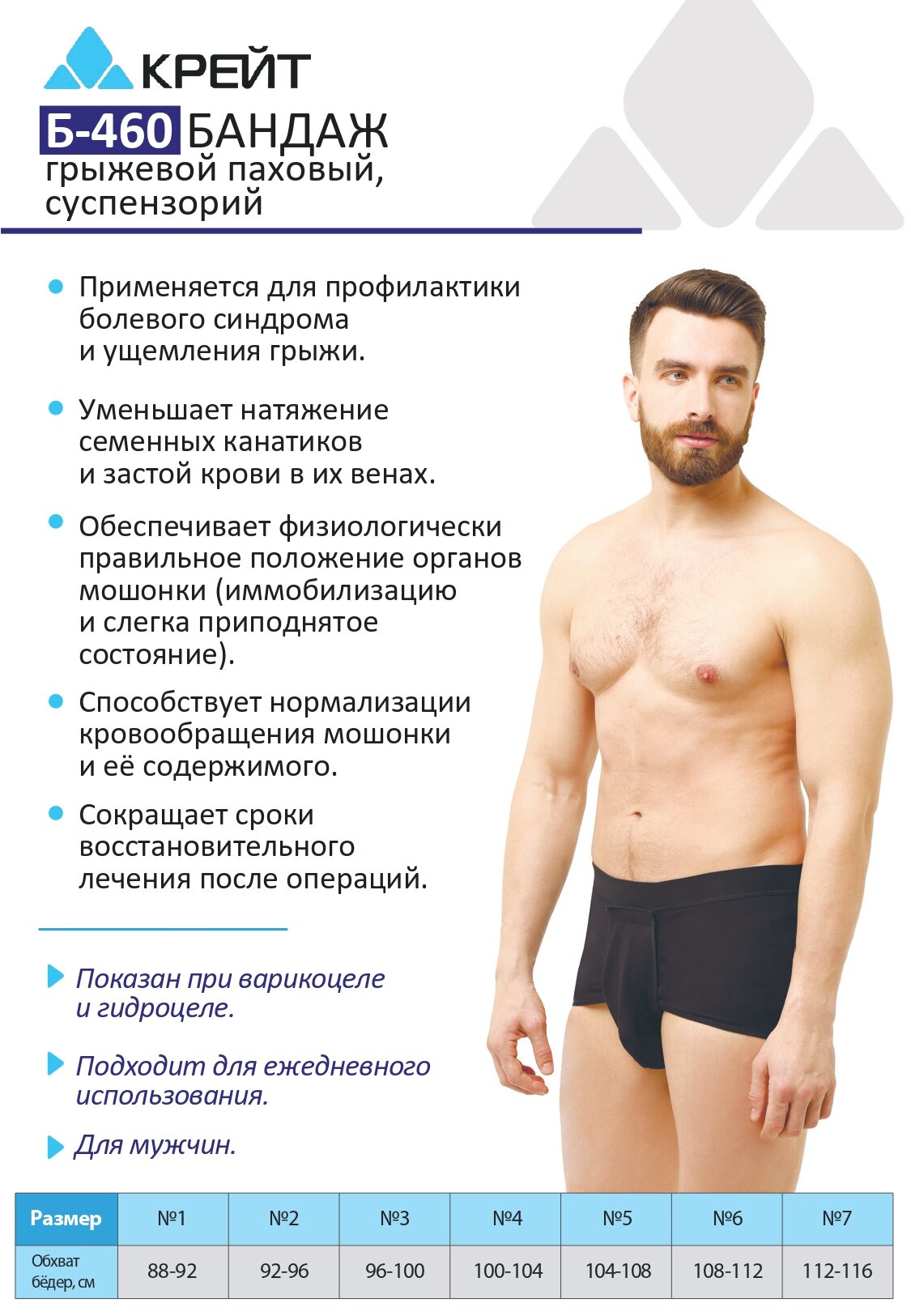 Бандаж грыжевой паховый - суспензорий Крейт Б-460 3 96-100см обхват бедер