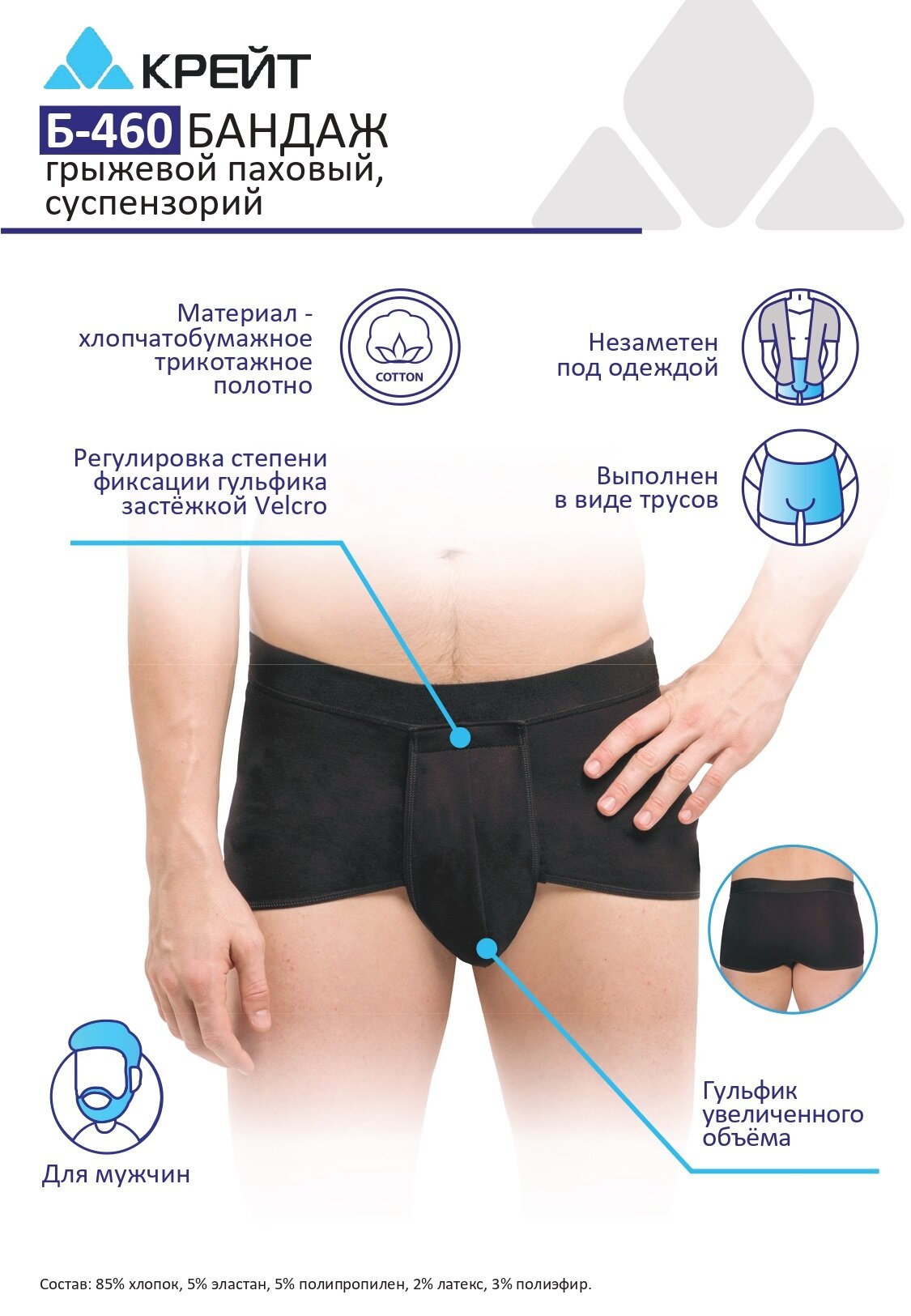 Бандаж грыжевой паховый мужской суспензорий (трусы) Б-460 №4 черный
