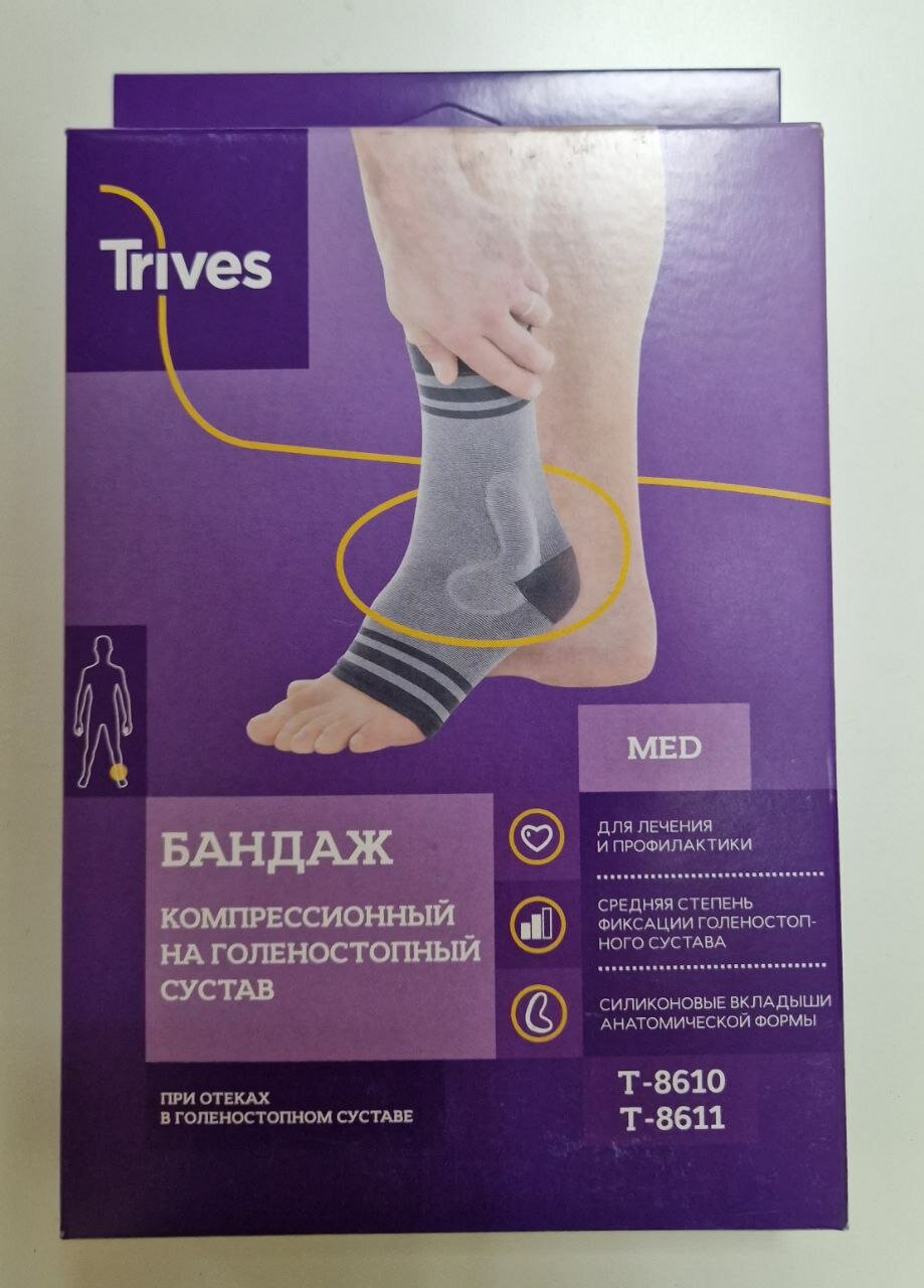 СохранитьБандаж компрессионный на голеностопный сустав с силиконовыми вкладышами Т.46.11 (Т-8611) Тривес, размер: M интересное: