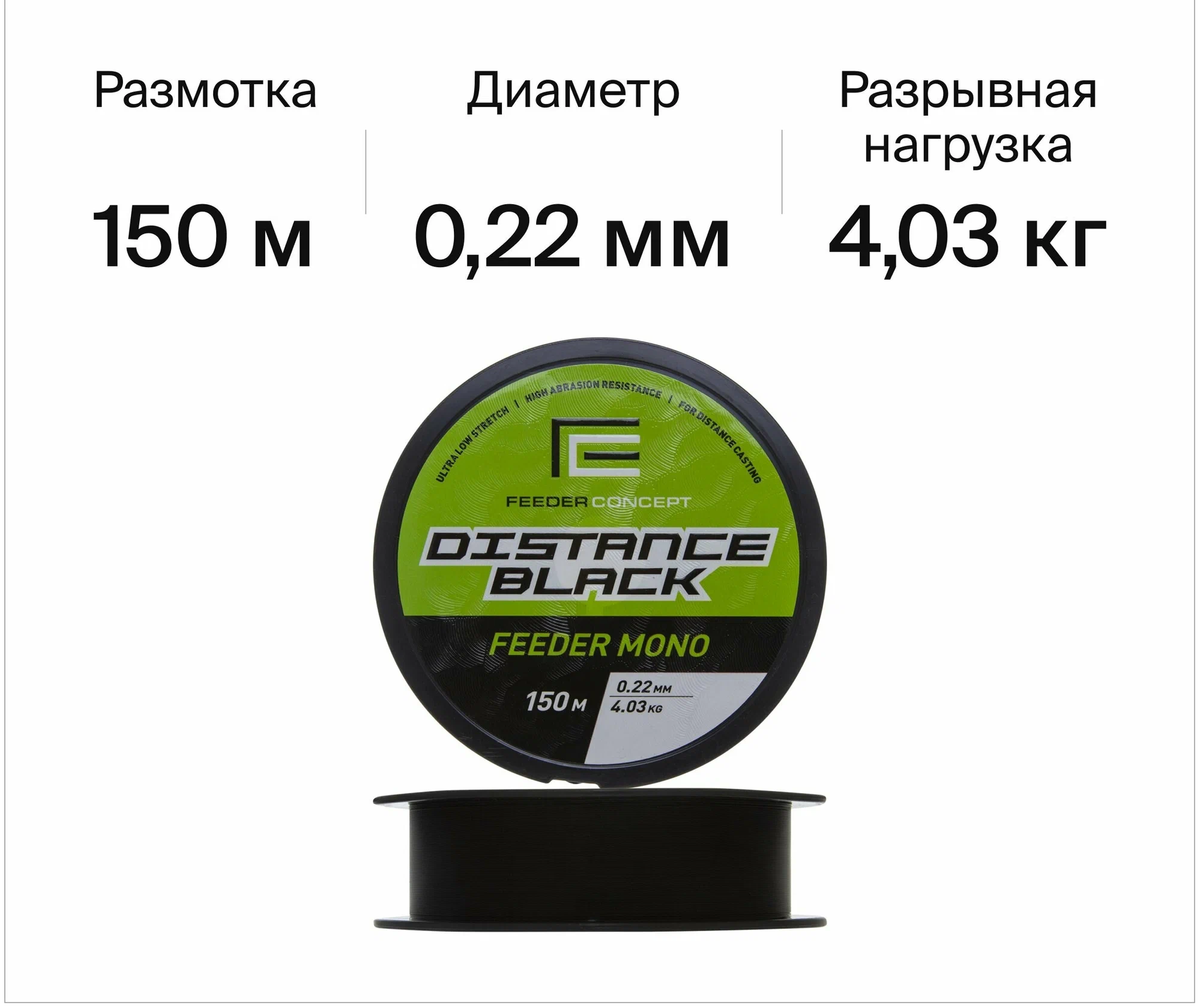 Монофильная леска Feeder Concept Distance Black d=0.22 мм, 150 м, 4.03 кг, black, 1 шт.