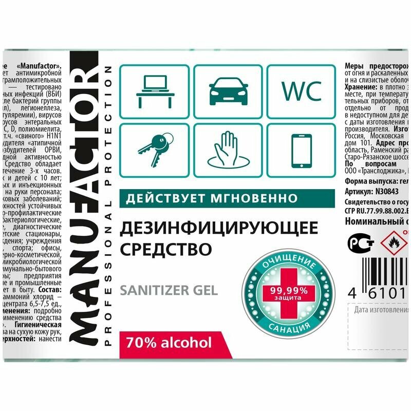 N308 Дезинфицирующий гель Manufactor 0,1 л, ПЭТ, флип-топ, арт. N30857