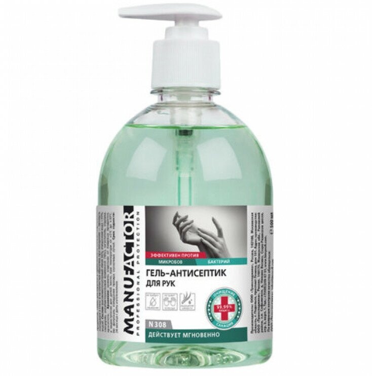 Антисептик-гель для рук спиртосодержащий (спирт 66%-70%) с дозатором 500мл MANUFACTOR, дезинфицирующий, N30804