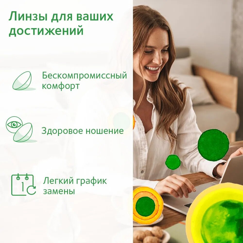| Плюсы: | Удобные линзы, мягкие, не сушат глаза |