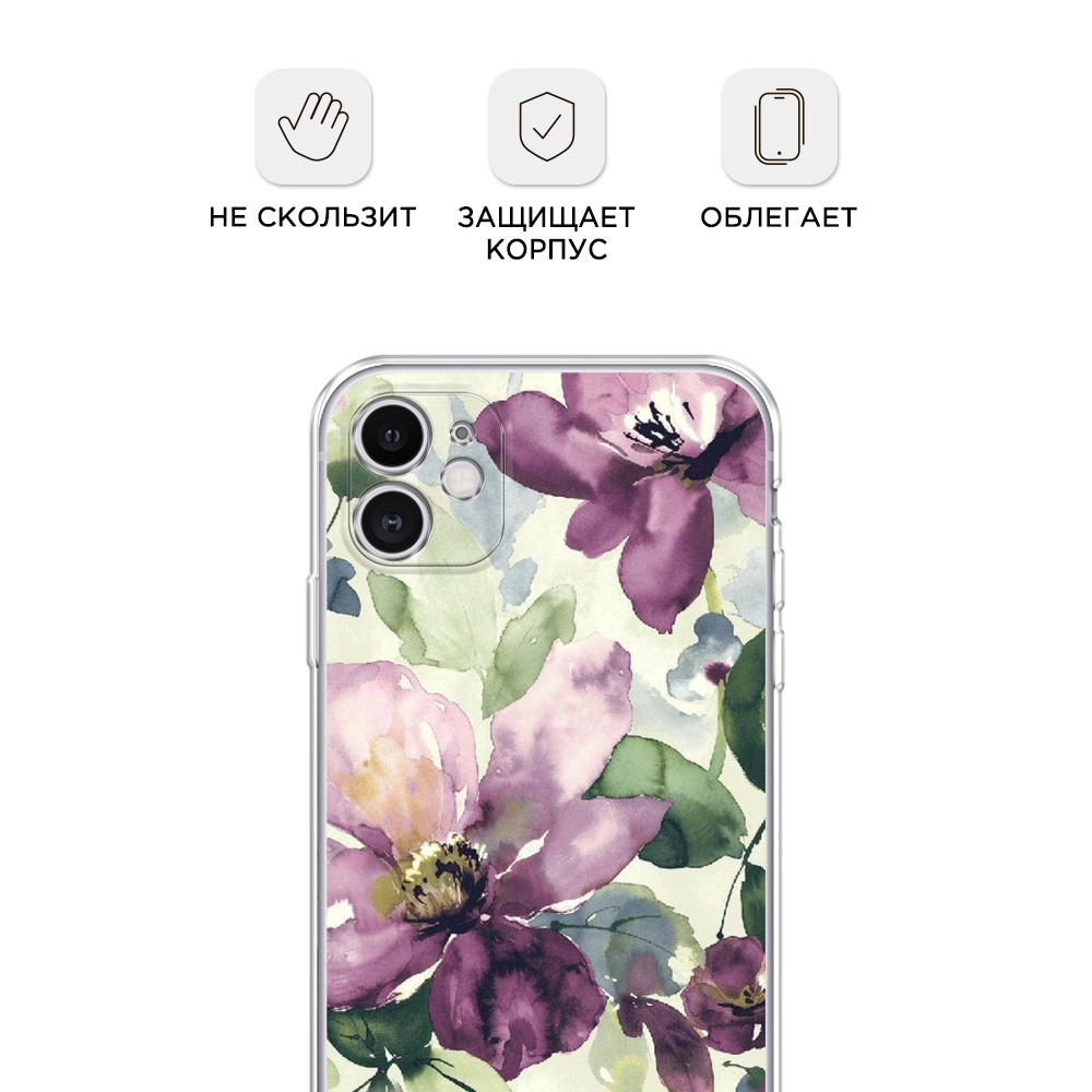 СохранитьСиликоновый чехол "Сиреневые цветы-акварель" на Apple iPhone 11 / Айфон 11 интересное: