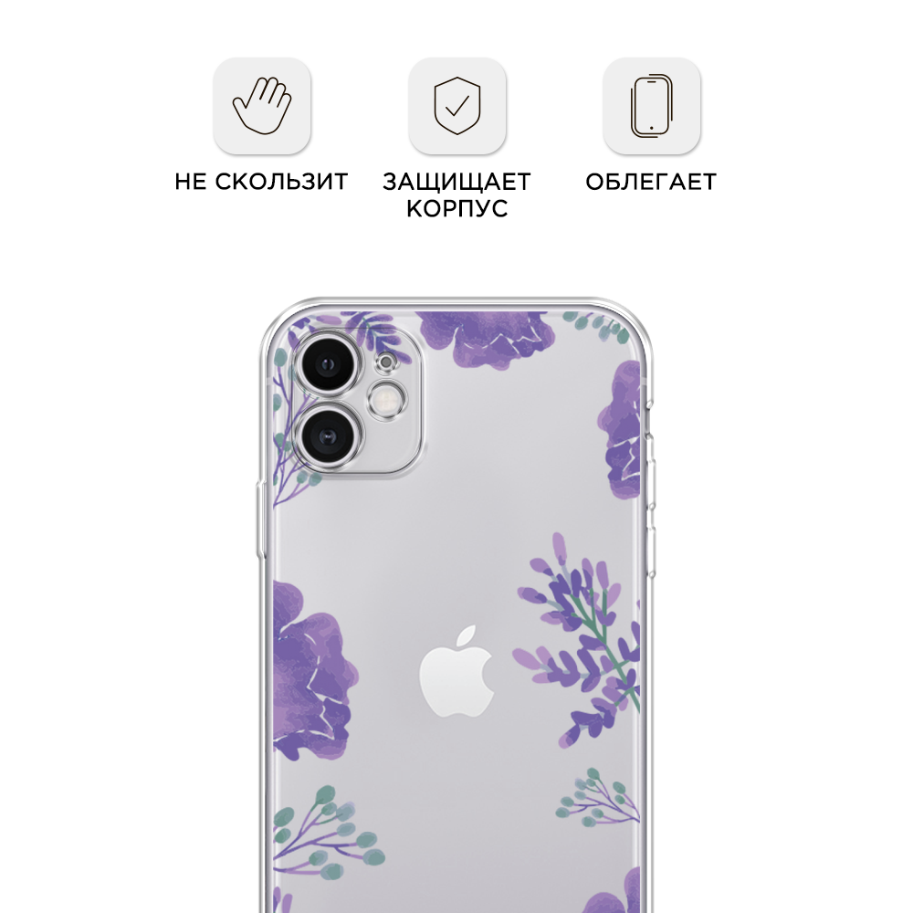 СохранитьСиликоновый чехол "Сиреневая цветочная рамка" на Apple iPhone 11 / Айфон 11 интересное: