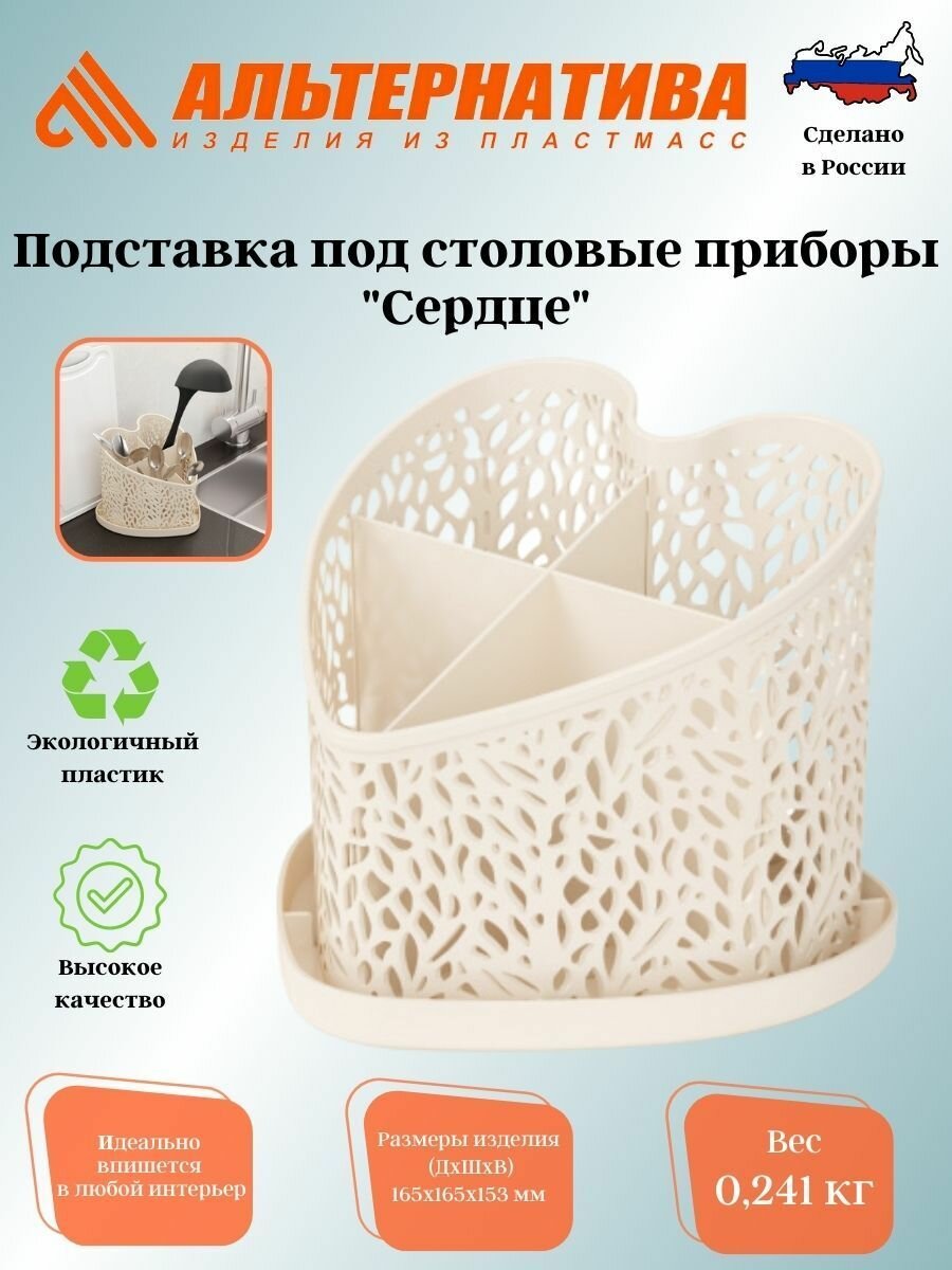 Подставка для столовых приборов сердце бежевый альтернатива