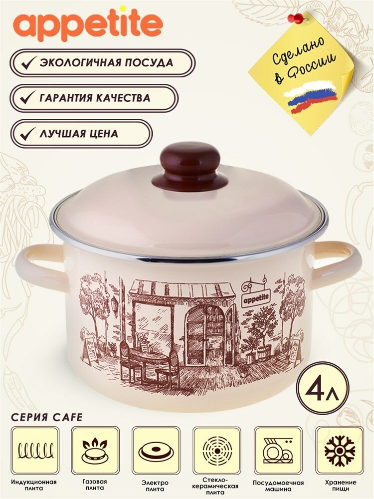 Купить Кастрюля эмалированная CAFE 4 л. Appetite