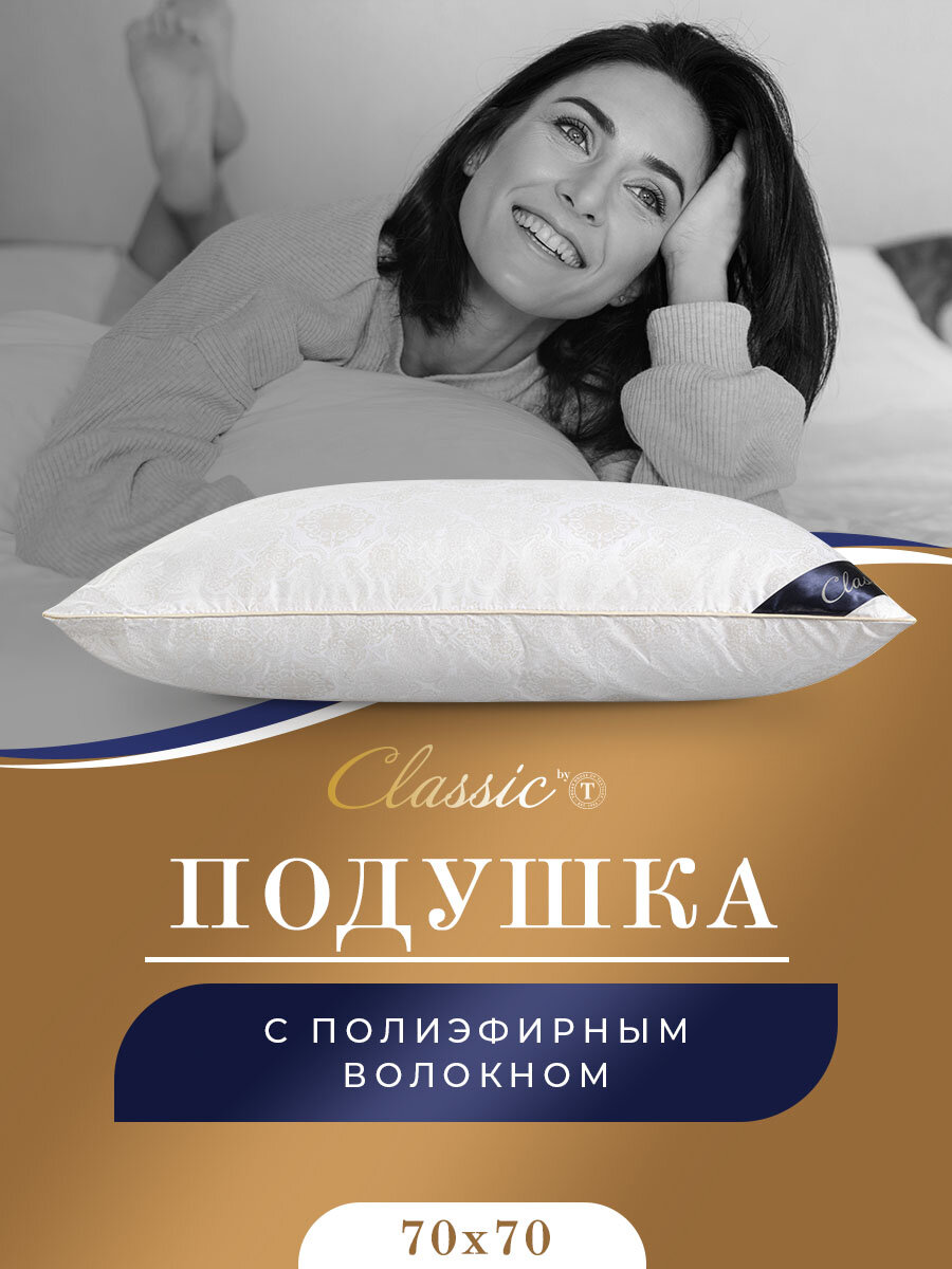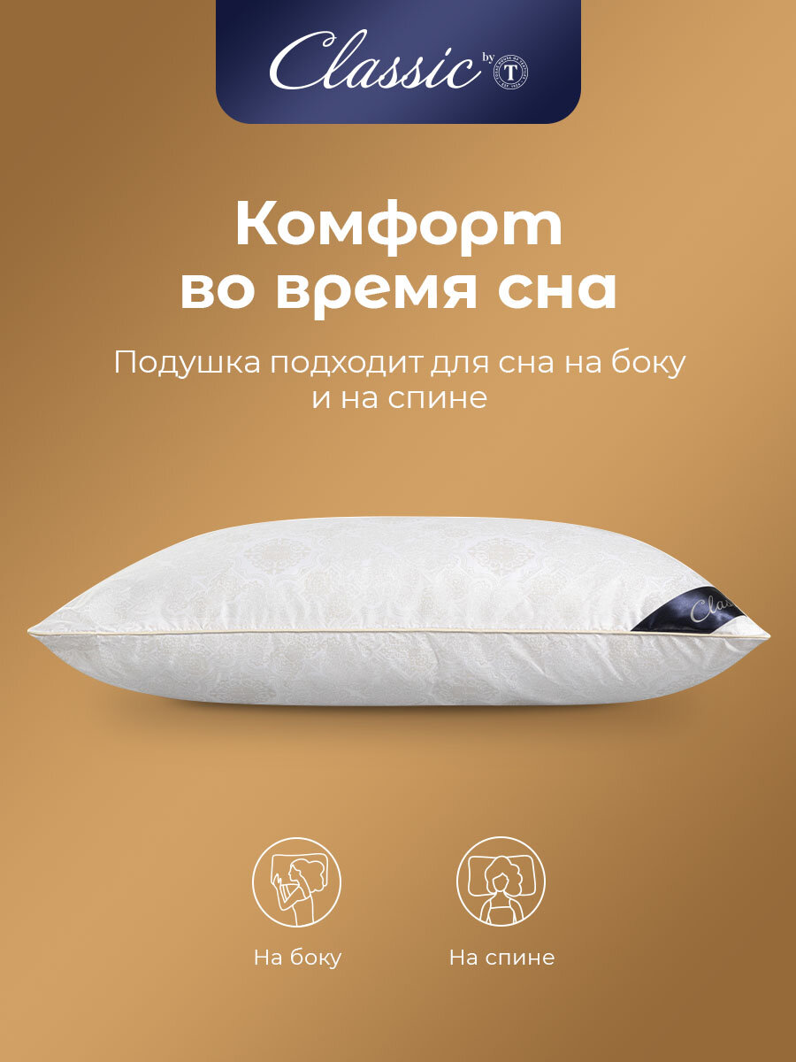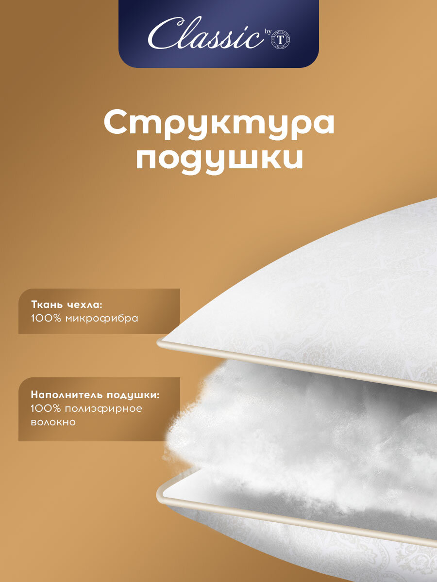 CLASSIC by T Подушка средняя Жемчуг, микроволокно Лебяжий пух (70х70) интересное: