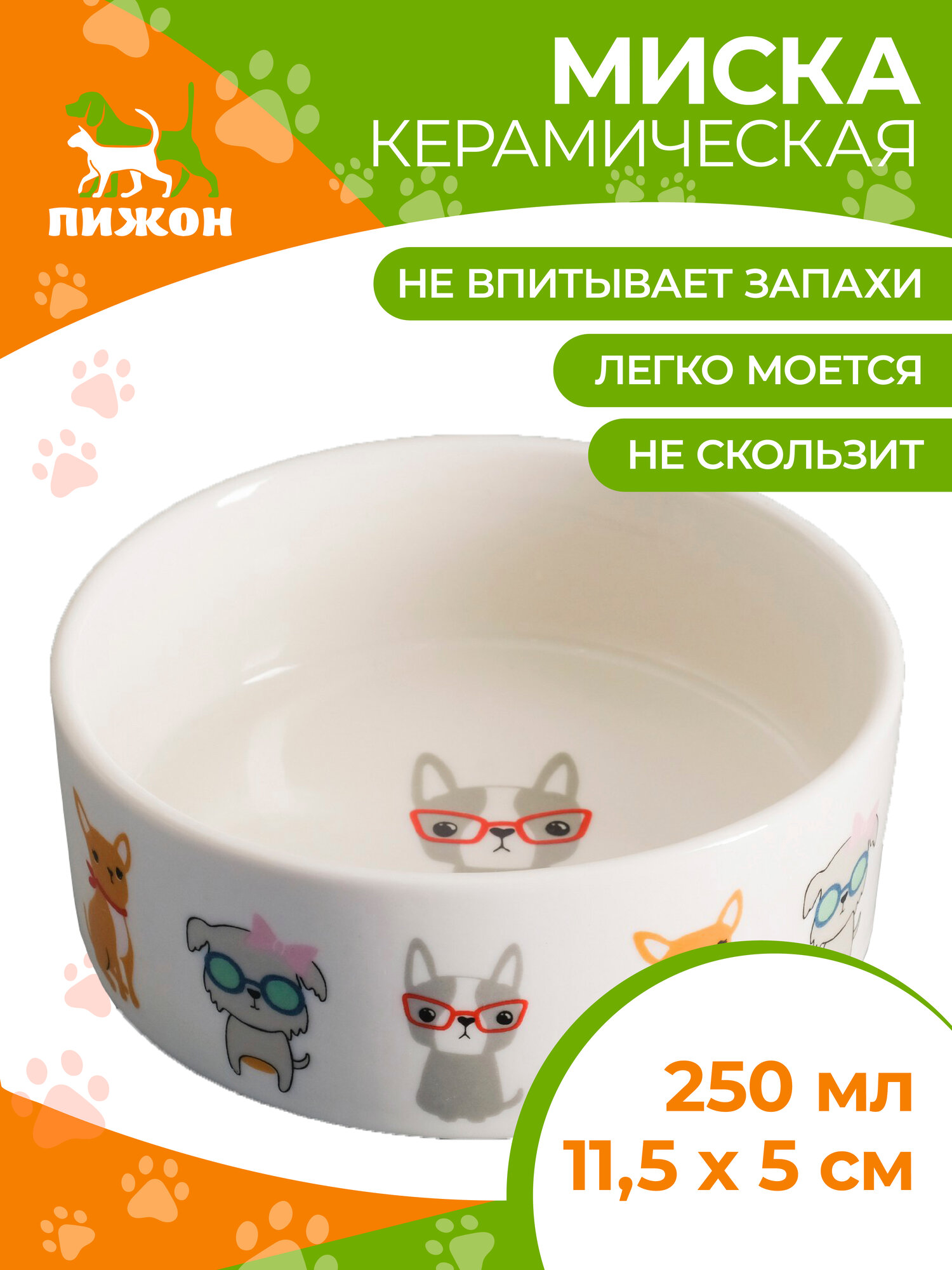 Купить Миска керамическая "Важный пес" 250мл, 11,5 х 5 см, белая