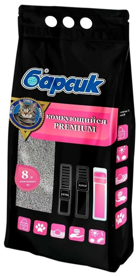 Наполнитель Барсик Premium для кошек, комкующийся, 5.5 л, 4.54 кг