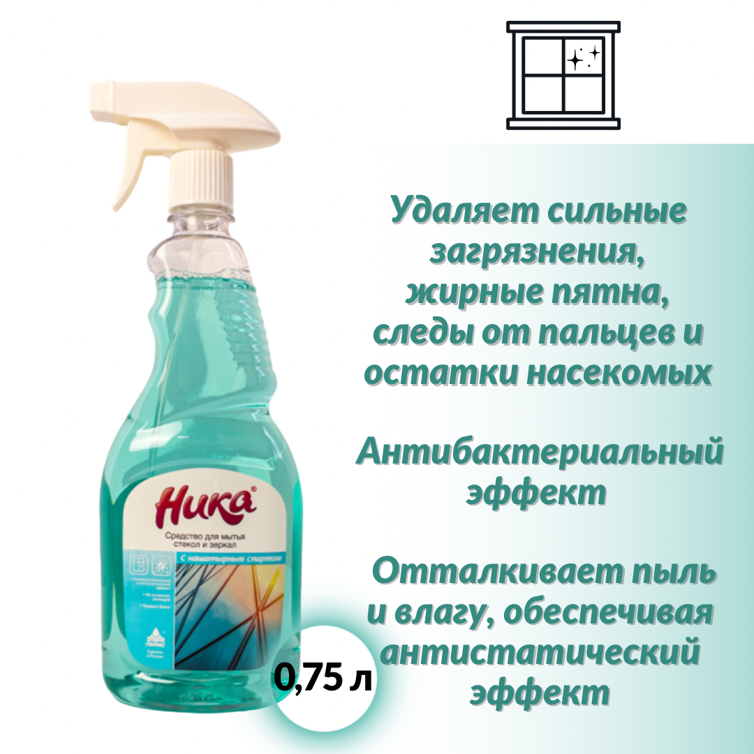 Средство для мытья стекол и зеркал Ника 0,75 л интересное: