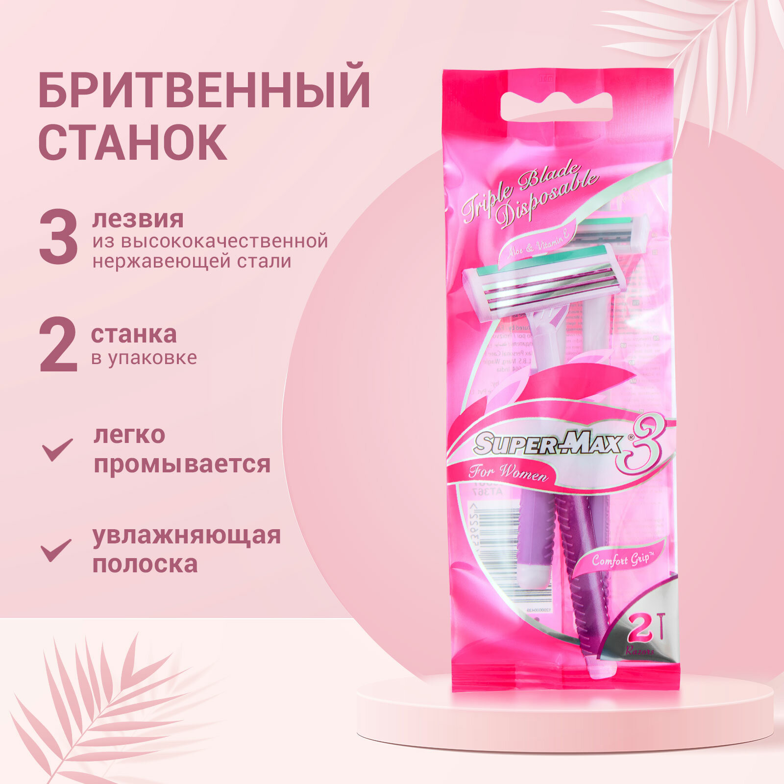Купить Одноразовые станки женские SUPER-MAX с тройным лезвием, 2 шт, AT367