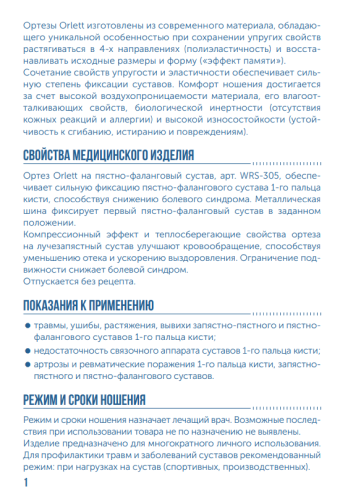 Ортез ORLETT WRS-305 на первый пястно-фаланговый сустав