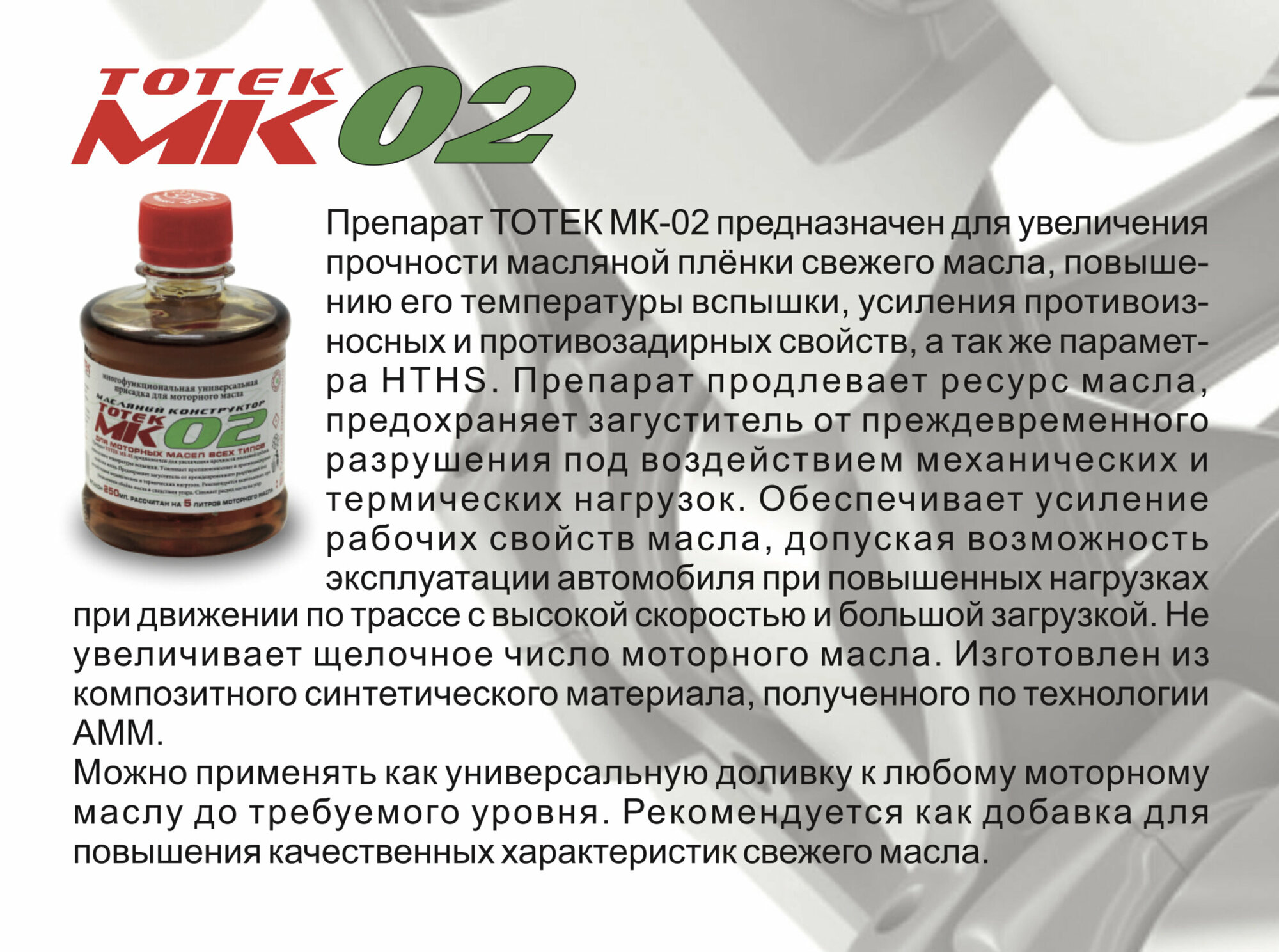 Присадка тотек МК-02 250мл (на 5л)