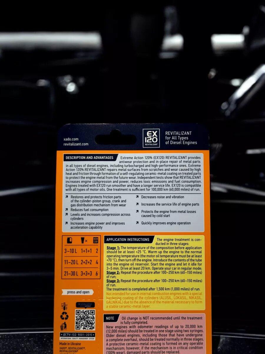 Ниже Вы можете прочитать отзывы на XADO Revitalizant EX120 для всех типов дизельных двигателей, 0.009л, ознакомится с подробными характеристиками, посмотреть интересные обзоры и фотографии на XADO Revitalizant EX120 для всех типов дизельных двигателей, 0.009л.