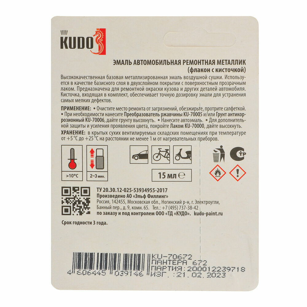 Купить Эмаль автомобильная с кисточкой KUDO пантера металлик 672 15 г Ku-70672
