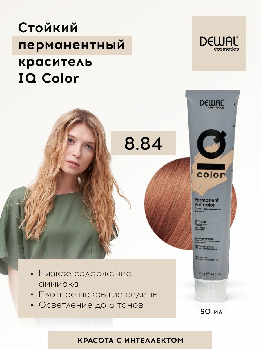 Dewal Cosmetics IQ COLOR - Деваль АйКью Колор Краситель перманентный, 90 мл - IQ COLOR 8.84 Светлый блондин бежево-медный