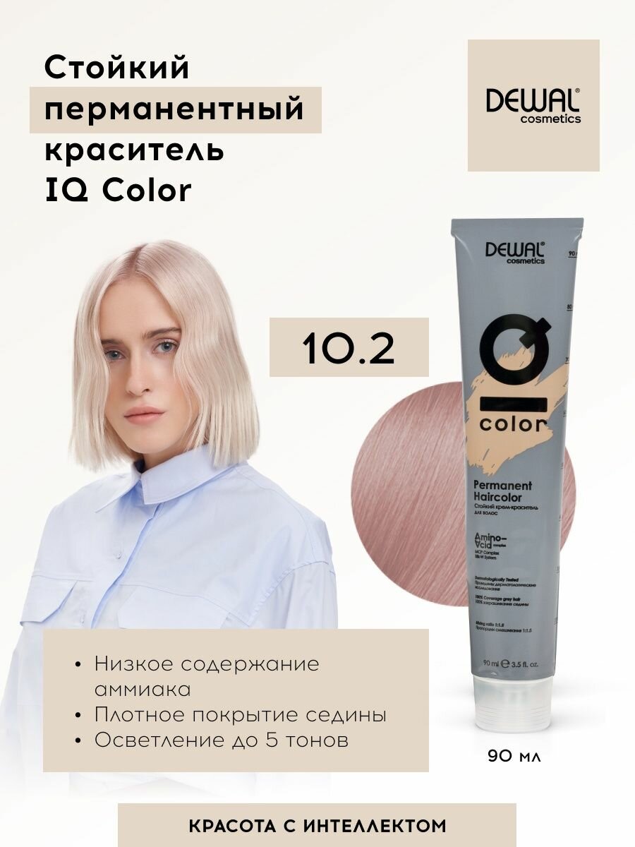 Dewal Cosmetics IQ COLOR - Деваль АйКью Колор Краситель перманентный, 90 мл - IQ COLOR 10.2 Экстра светлый блондин жемчужный