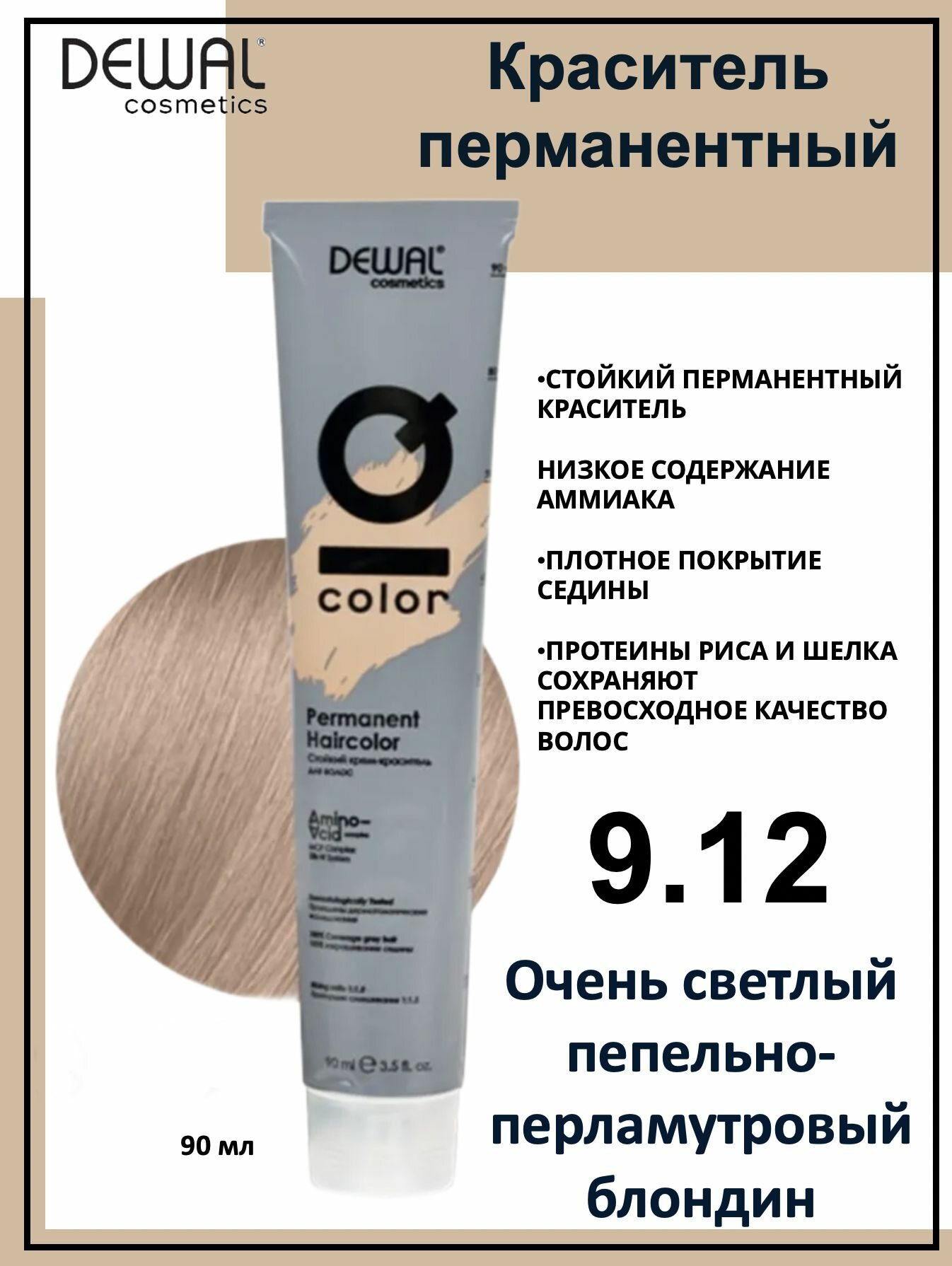 9.12 Краситель перманентный IQ COLOR DEWAL очень светлый пепельно-перламутровый блондин, 90мл