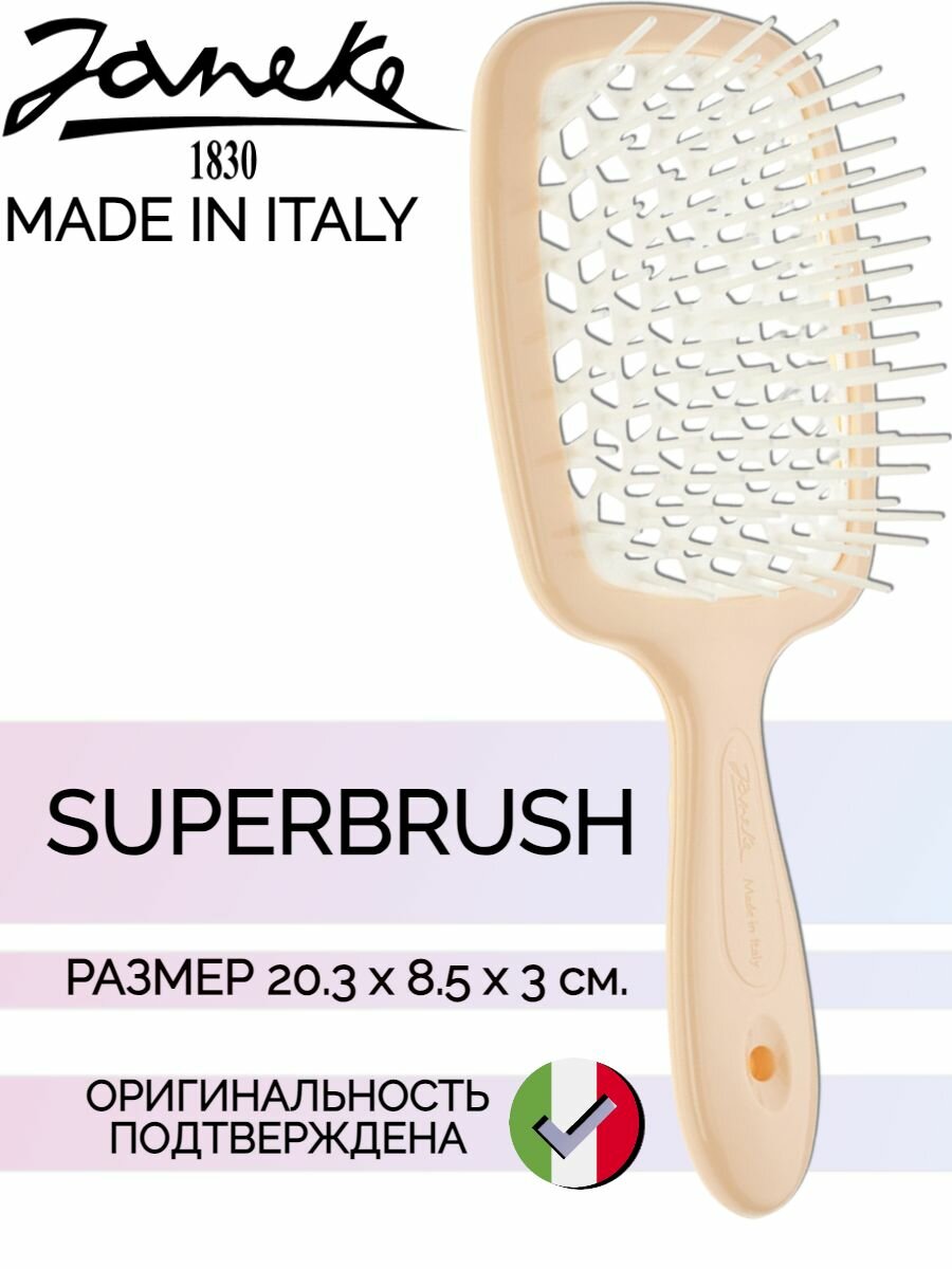 Купить Щетка Janeke Superbrush с закругленными зубчиками, персиково-белая, 20.3х8.5х3.1 см