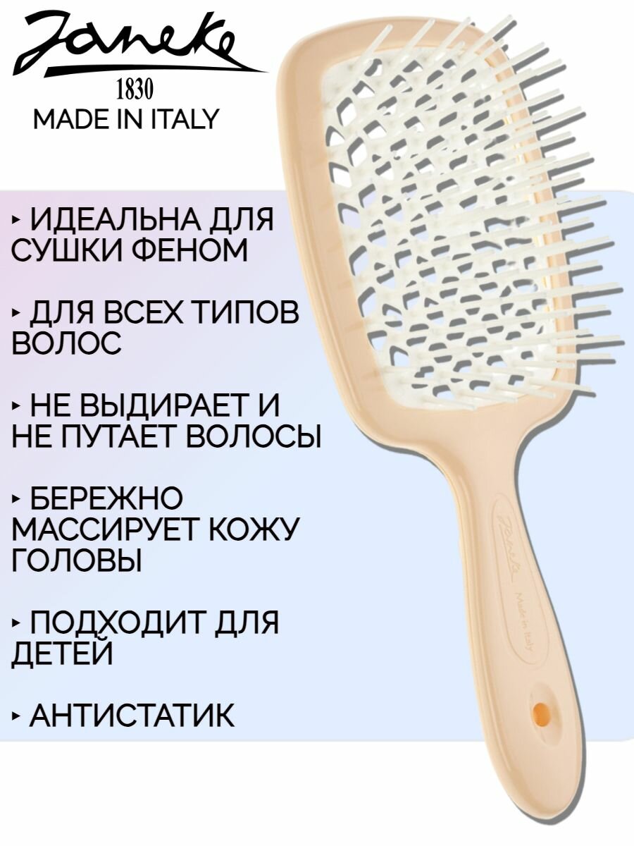СохранитьЩетка Janeke Superbrush с закругленными зубчиками, персиково-белая, 20.3х8.5х3.1 см интересное: