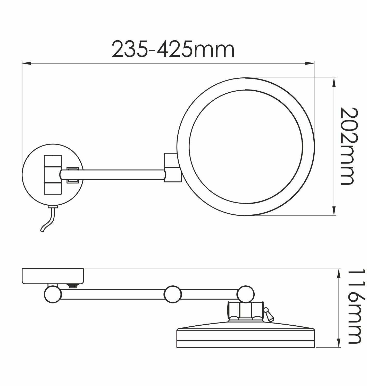 Зеркало с LED-подсветкой, 3-х кратным увеличением Wasserkraft Elbe K-1004BLACK