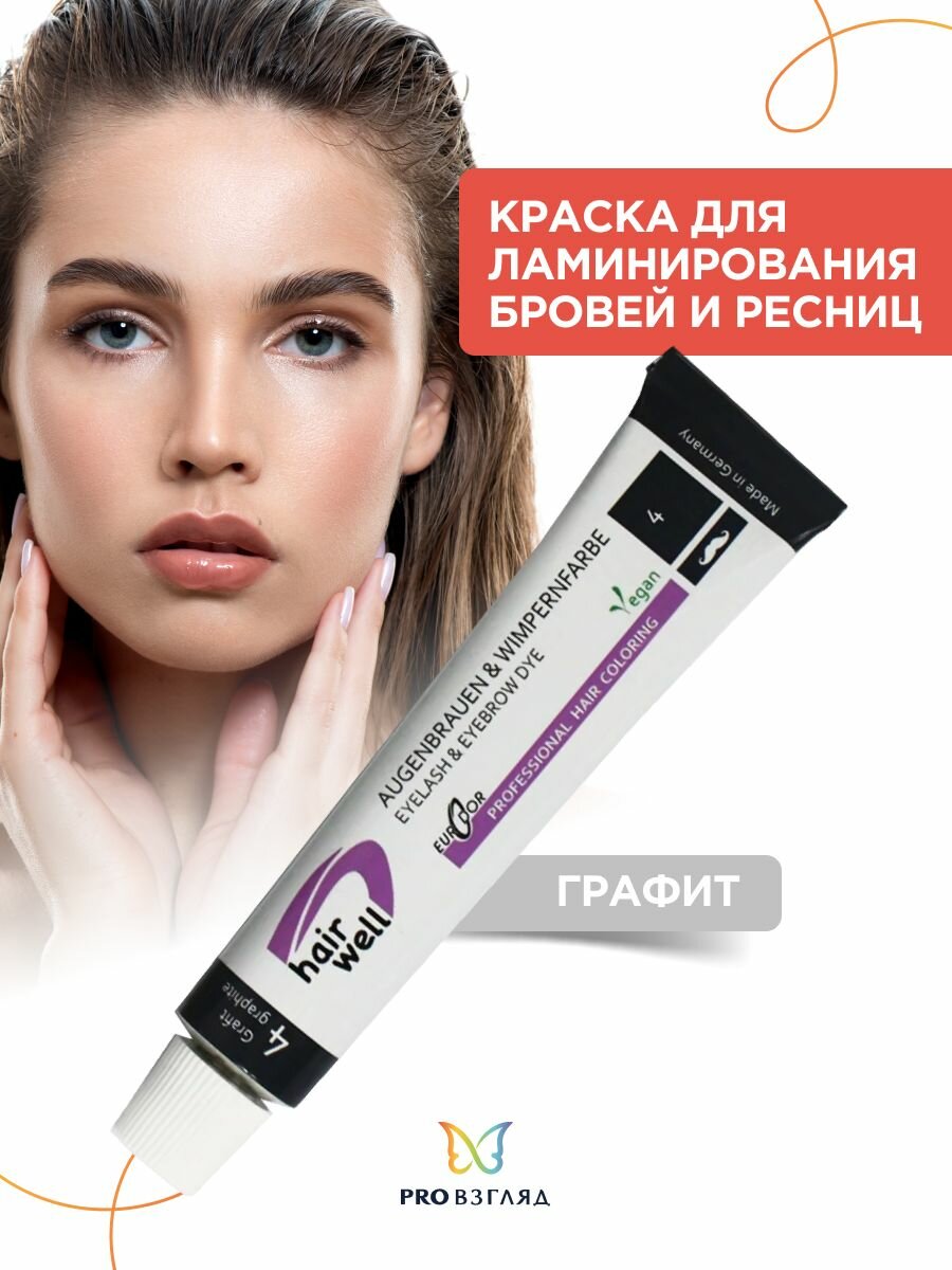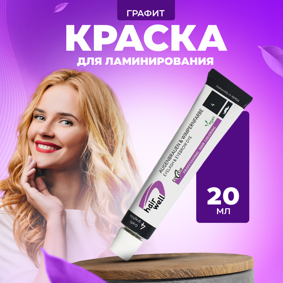 HairWell / Профессиональная краска для ламинирования бровей и ресниц (графит), 20 мл