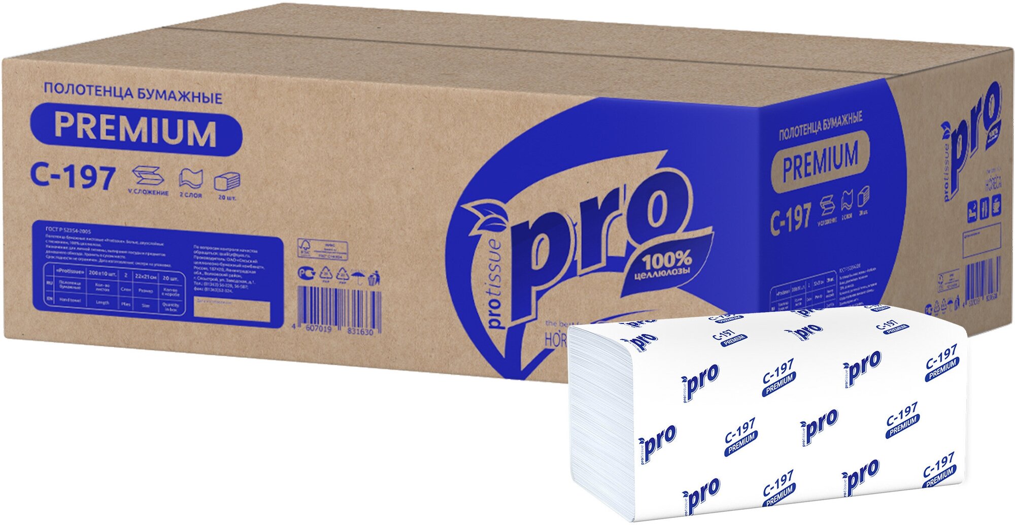 Полотенца бумажные Protissue Premium C-197 V-сложения двухслойные, 20 уп. 200 лист.