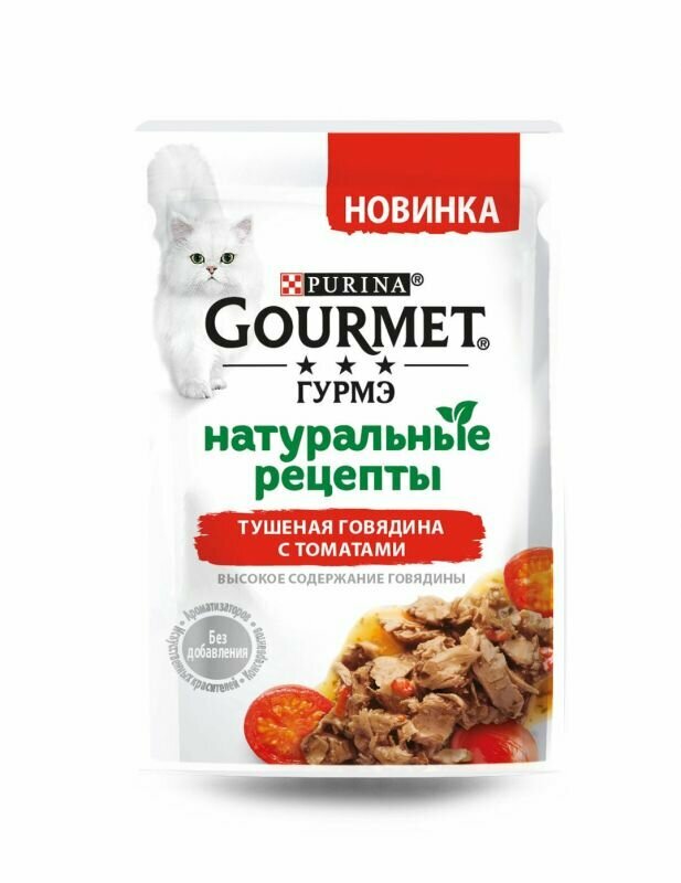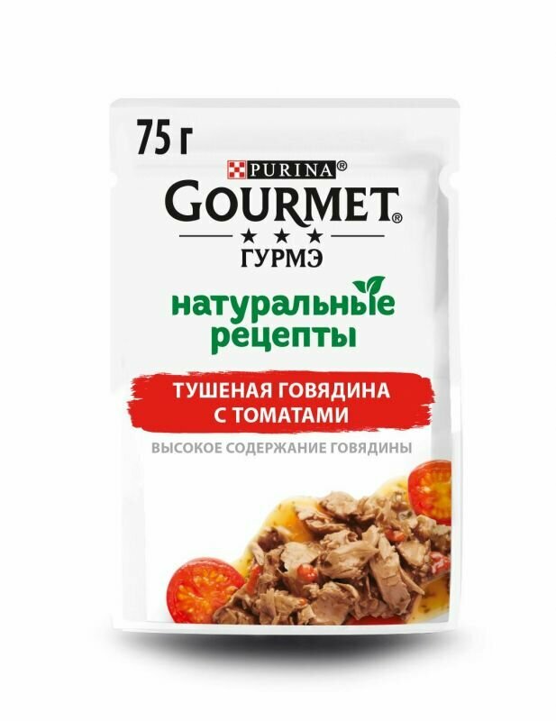 Влажный корм, "Гурмэ Натуральные рецепты", со вкусом тушёной говядины с томатами, 75г 13 шт