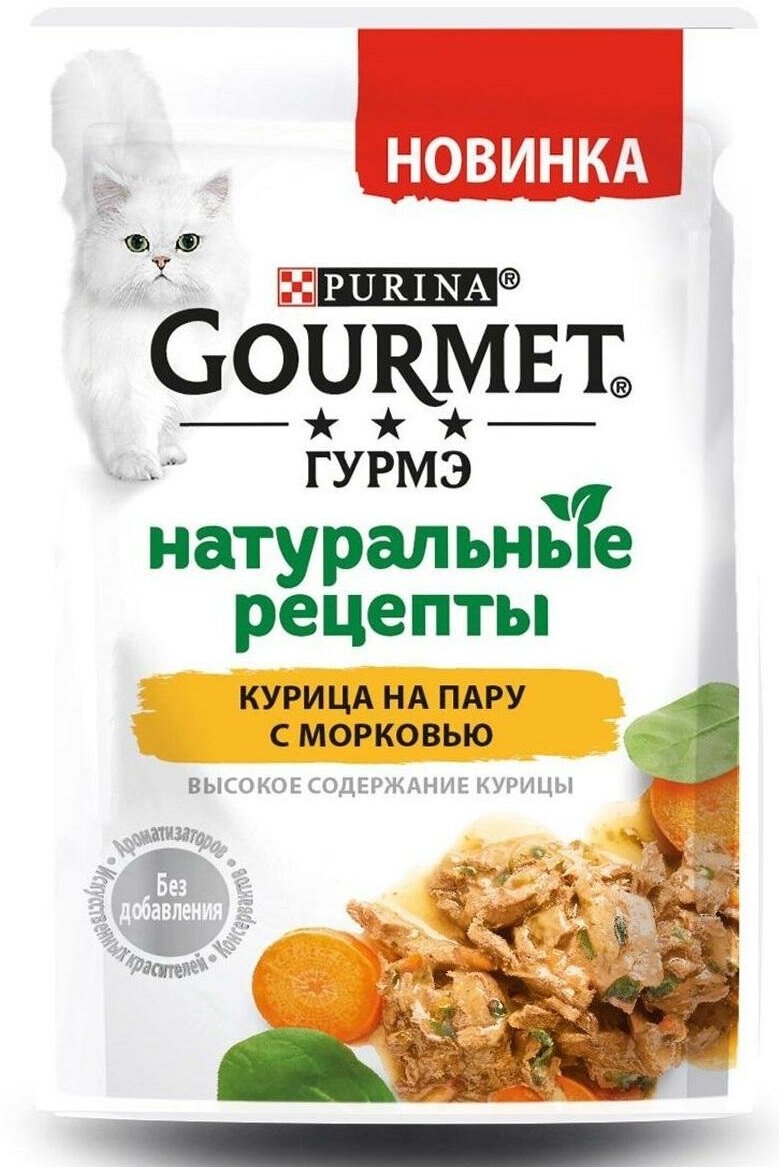 Гурмэ Натуральные рецепты пауч для кошек Курица и морковь, 75 г. упаковка 26 шт
