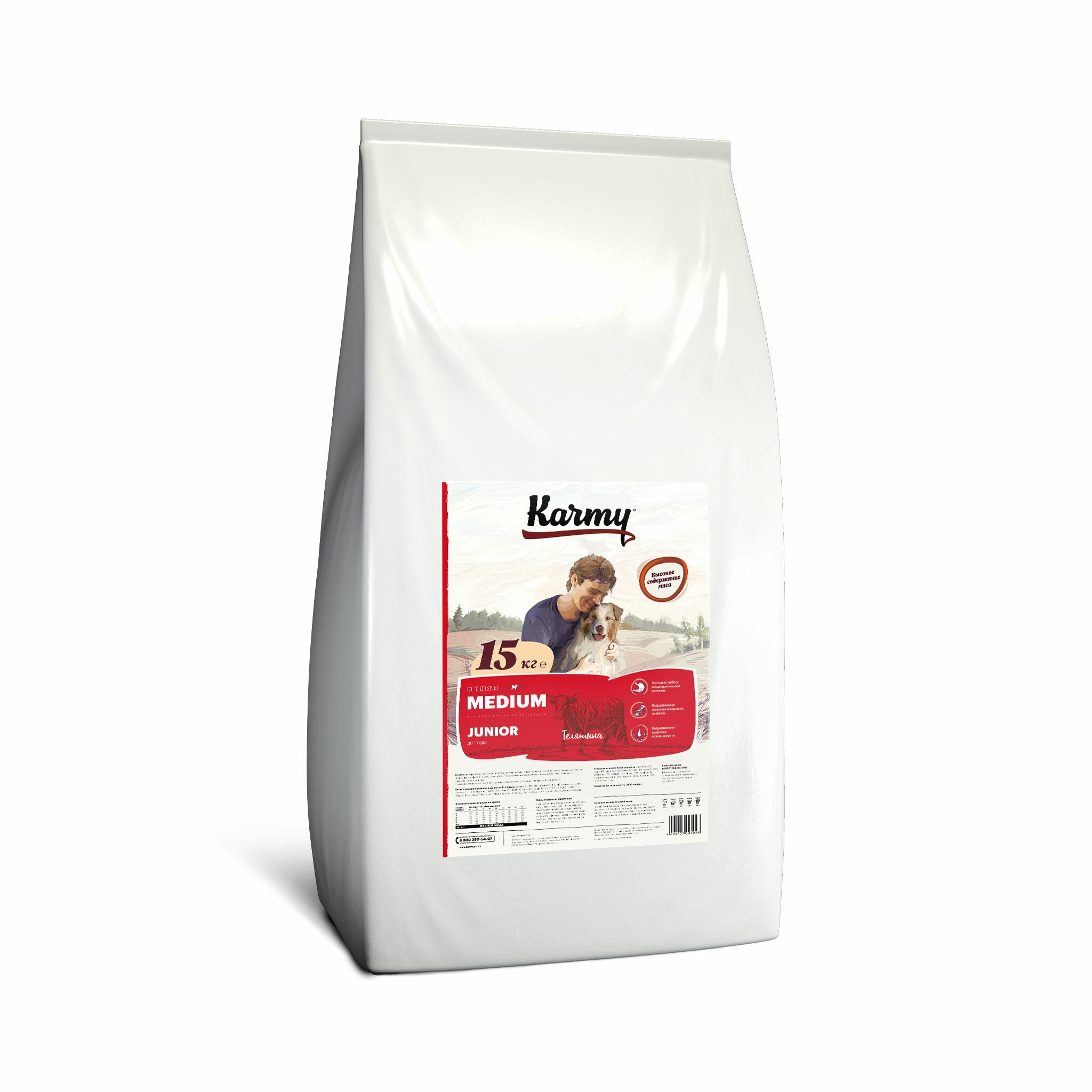 Корм Karmy Medium Junior для щенков средних пород, с телятиной, 15 кг
