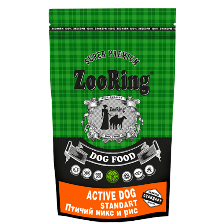 ZooRing Active Dog Standart, Сухой корм для взрослых Активных собак, Птичий Микс, 2,0 кг.