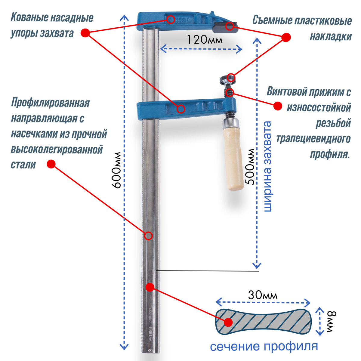 Струбцина универсальная 120 x 500 мм F-образная UNIPRO / Wilton 76103 интересное:
