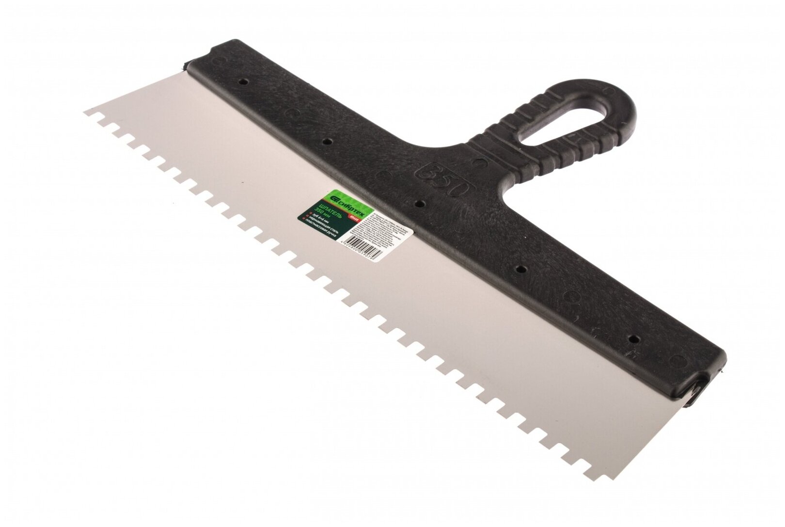 Сибртех Шпатель из нержавеющей стали,350 мм,зуб 8x8 мм,пластмассовая ручка //85477 .