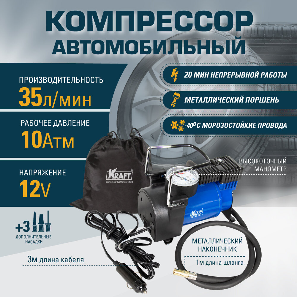 Автомобильный компрессор Kraft Eco 35 л/мин 7 атм