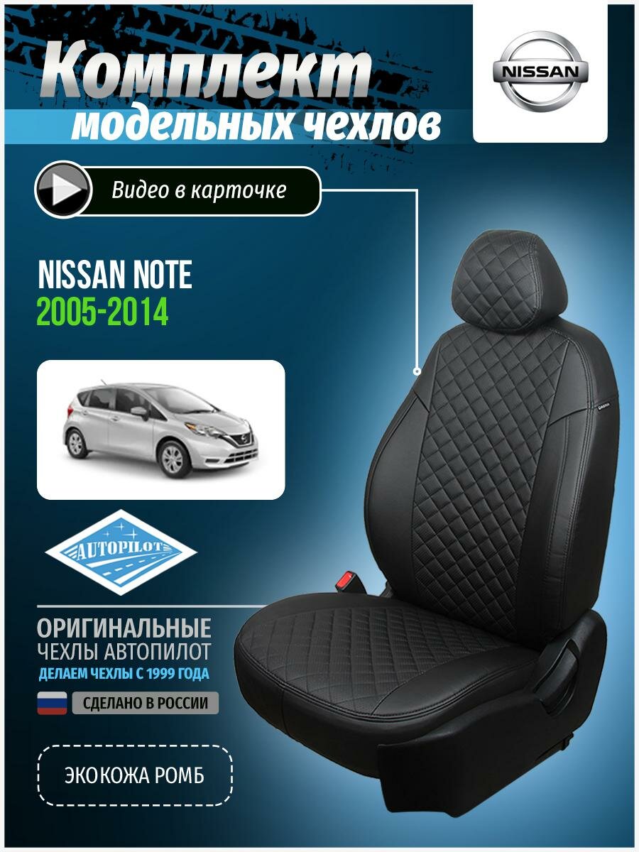 Чехлы Автопилот для Nissan Note с 05-14г. Экокожа, ромб, черный, черный, ni-nt-nt05-chch-r.