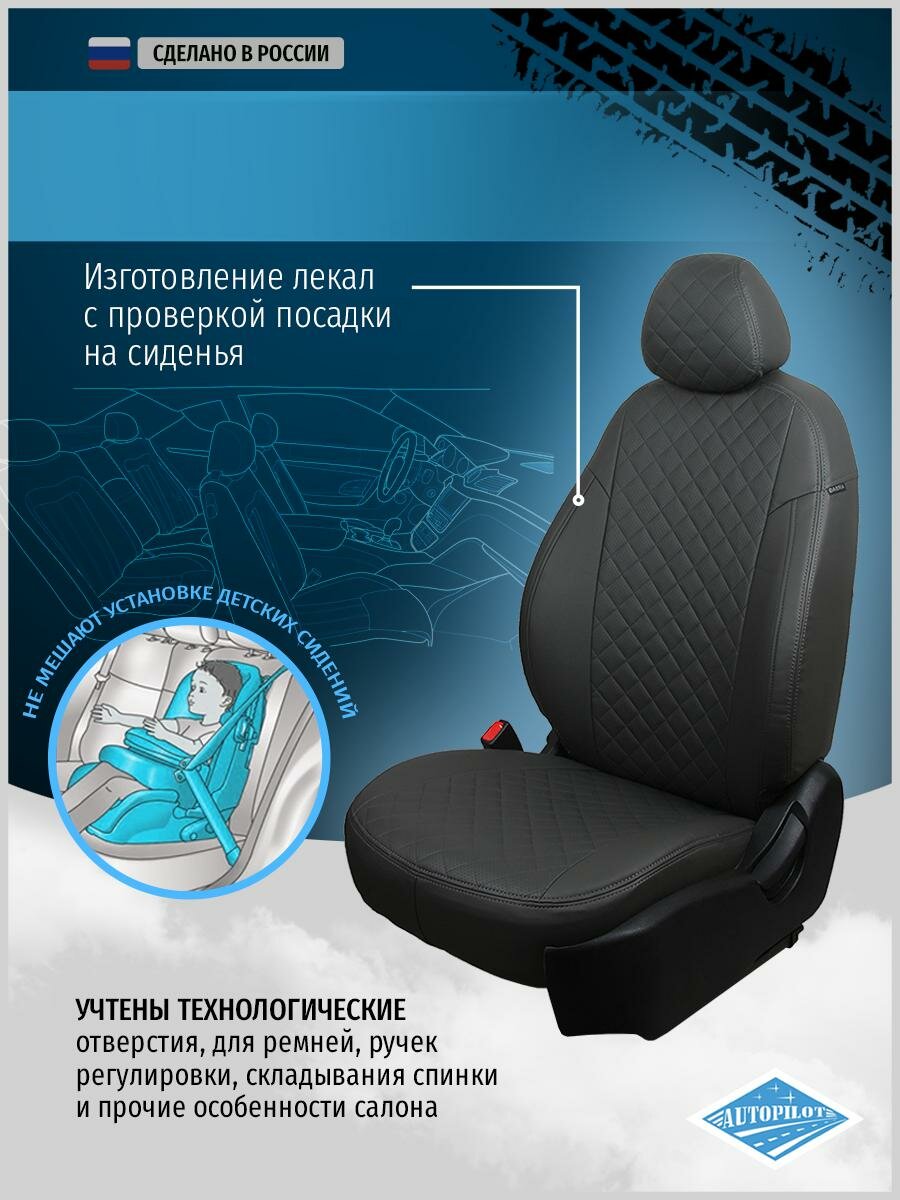 Авточехлы для Mazda 3 2008-2013 Автопилот Темно-Серый Экокожа с ромбом ma-3-3s14-tsts-r