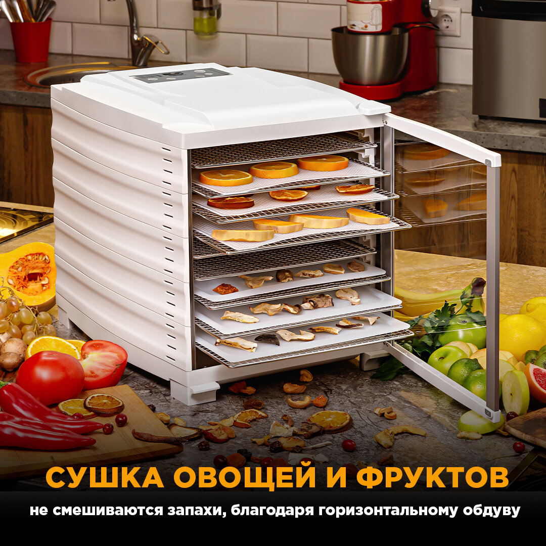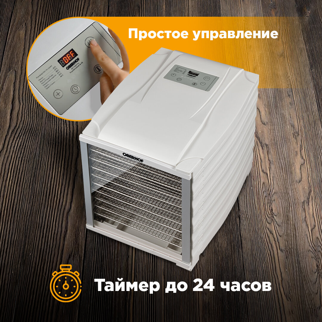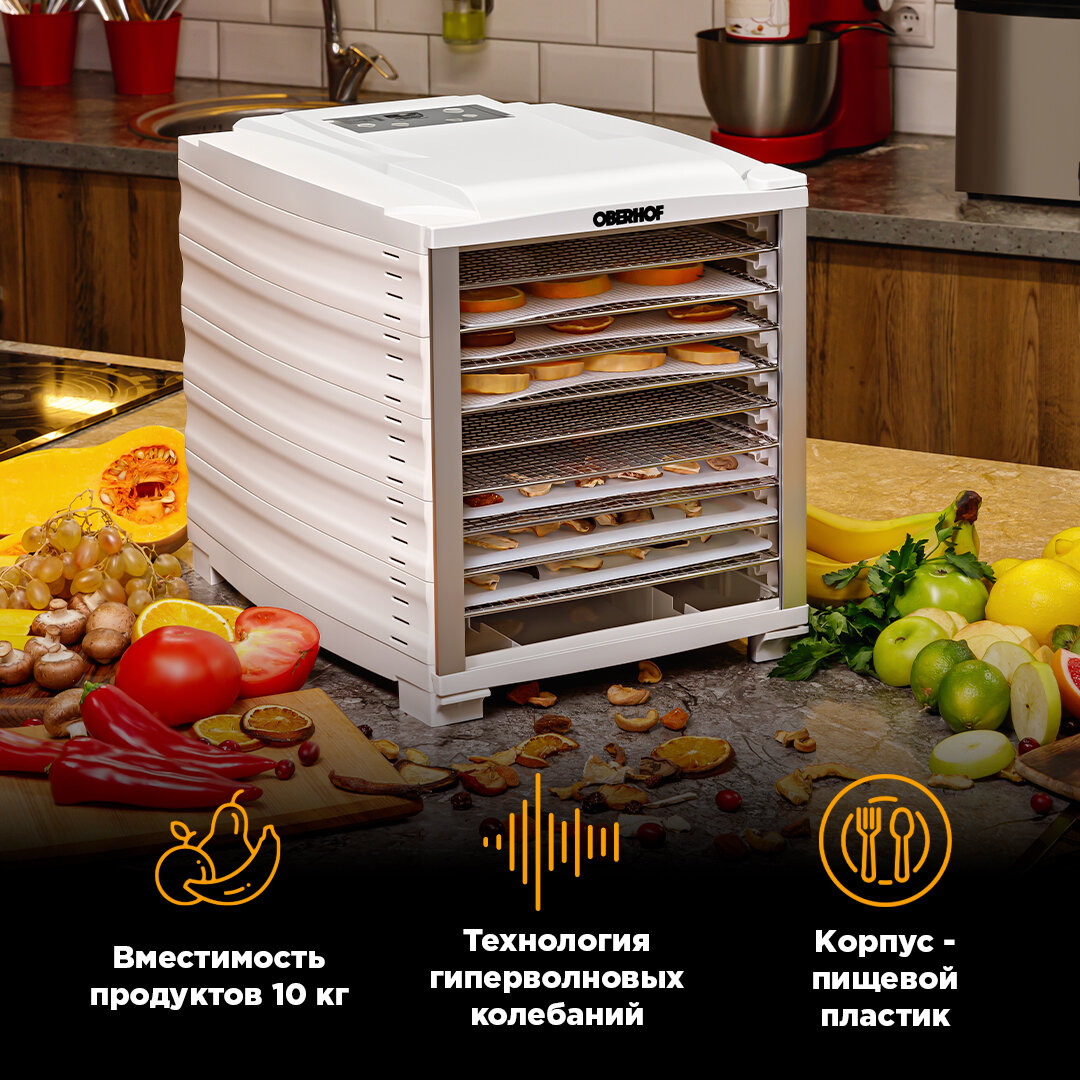 Сушилка OBERHOF Fruchttrockner В-53White/Дегидратор для овощей,зелени,фруктов,мяса/Электрическая сушка для пастилы/800вт/10 поддонов/Вместимость 10кг интересное: